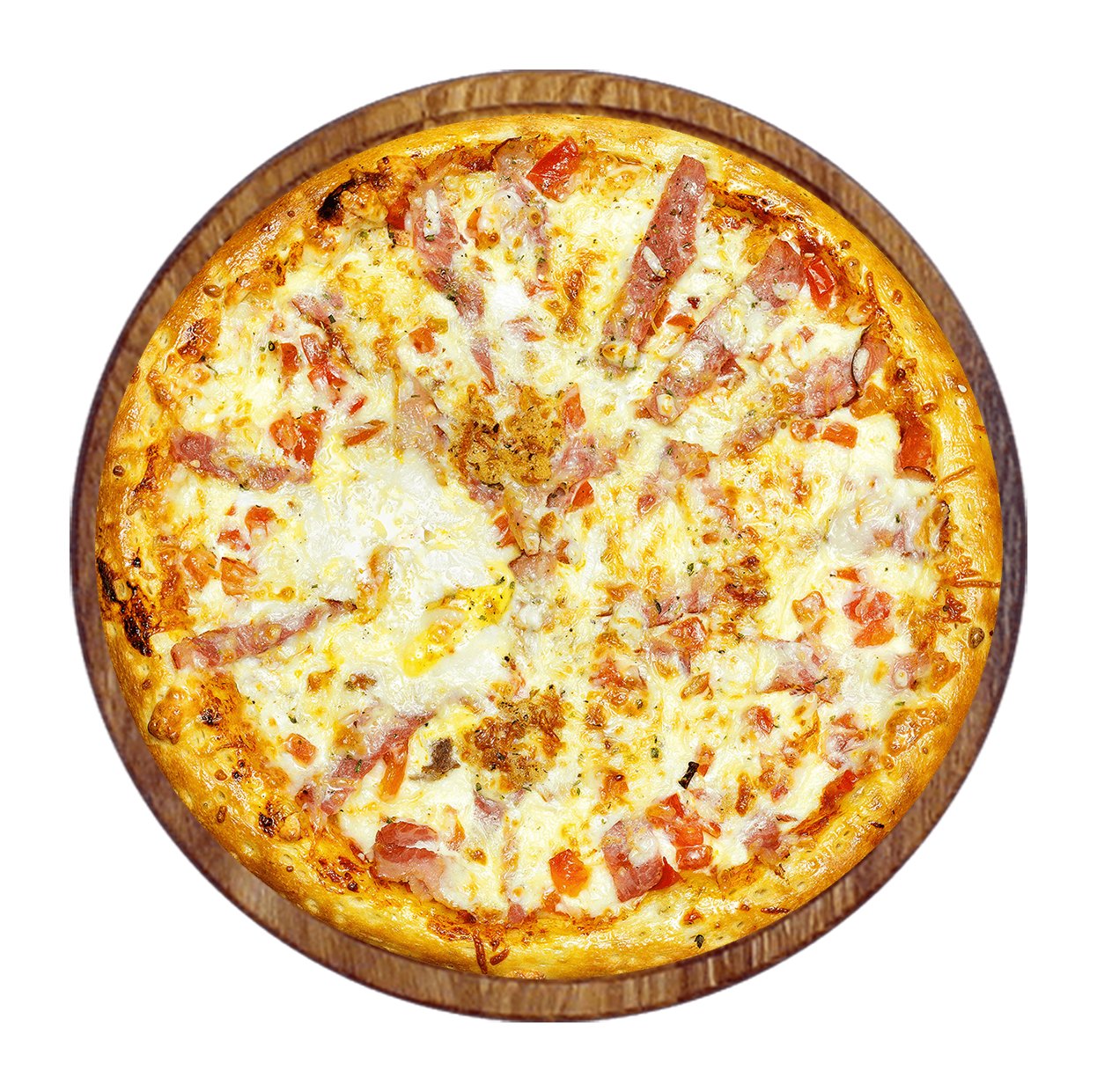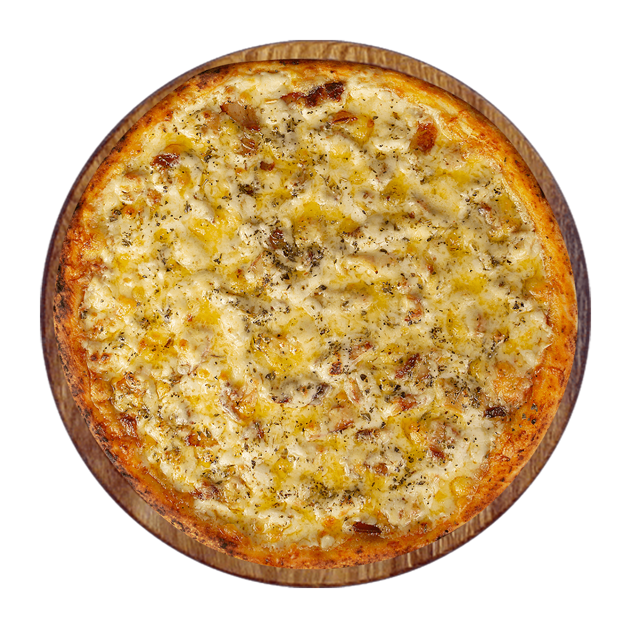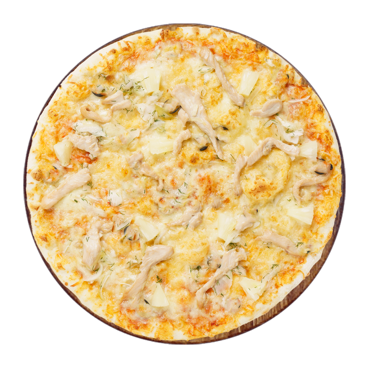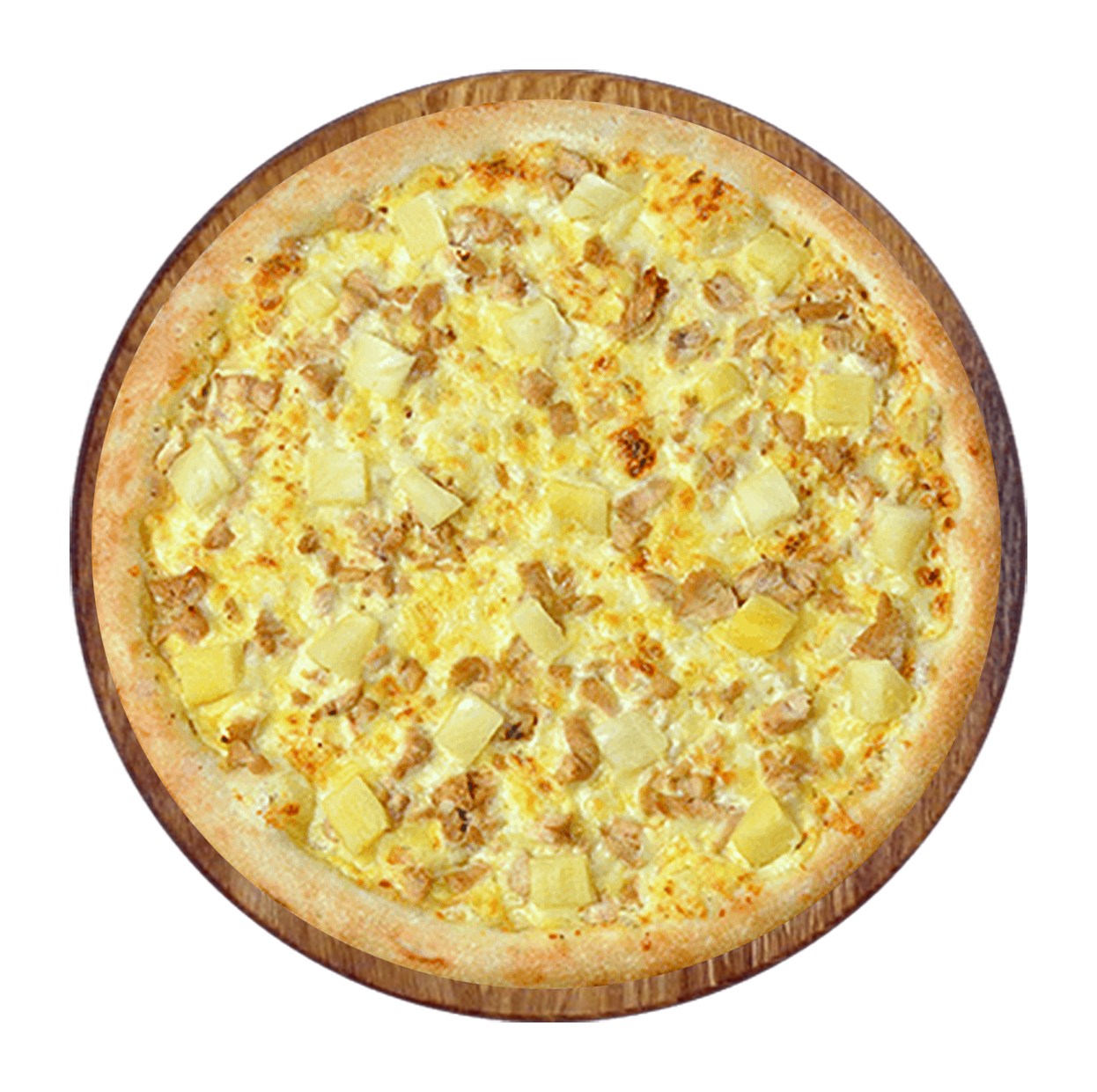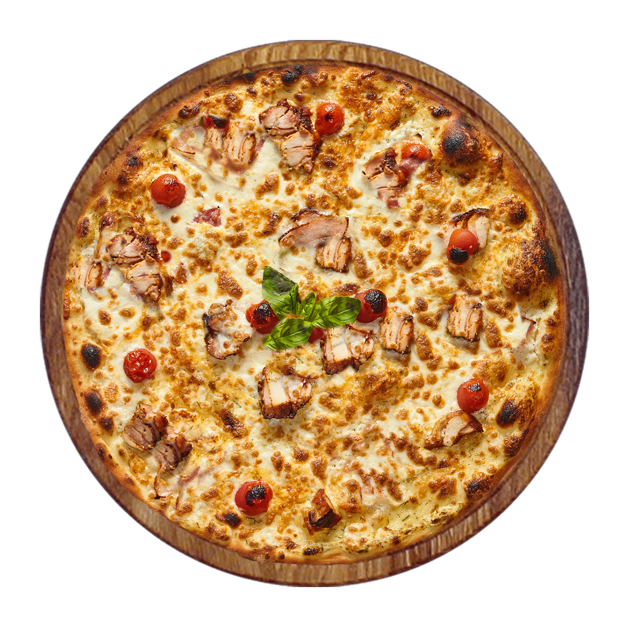 Crème fraîche, fromage, sauce curry, poulet, tomates fraîches, poivrons.